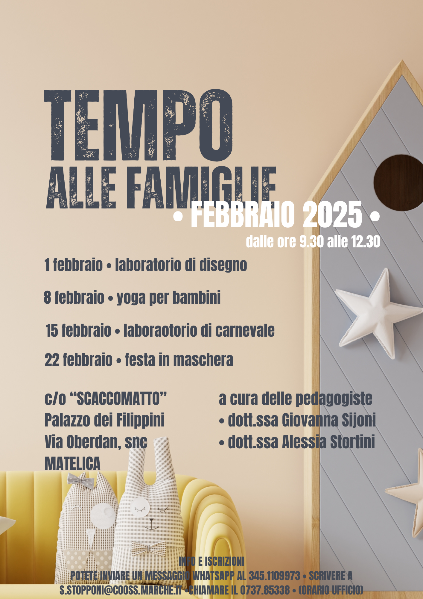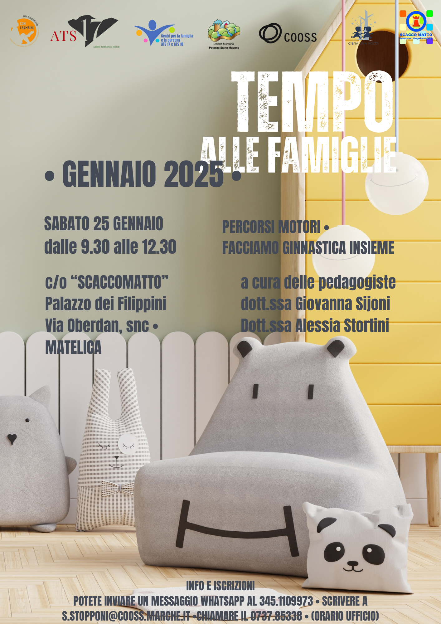 ★ A Matelica, tutti i sabato mattina, a Palazzo dei Filippini c/o la sede di Scacco Matto Onlus torna “Tempo alle Famiglie”, un progetto dedicato alle famiglie e ai bambini da 1 a 3 anni ★ Ecco i calendari del 2025! ★
